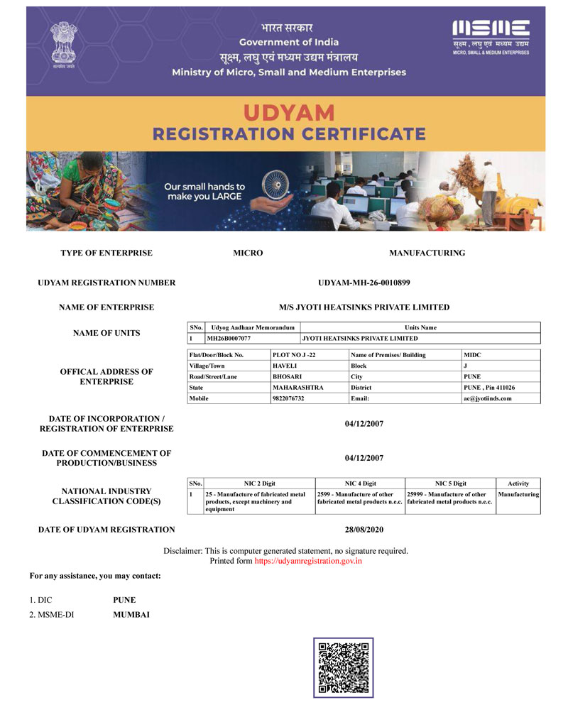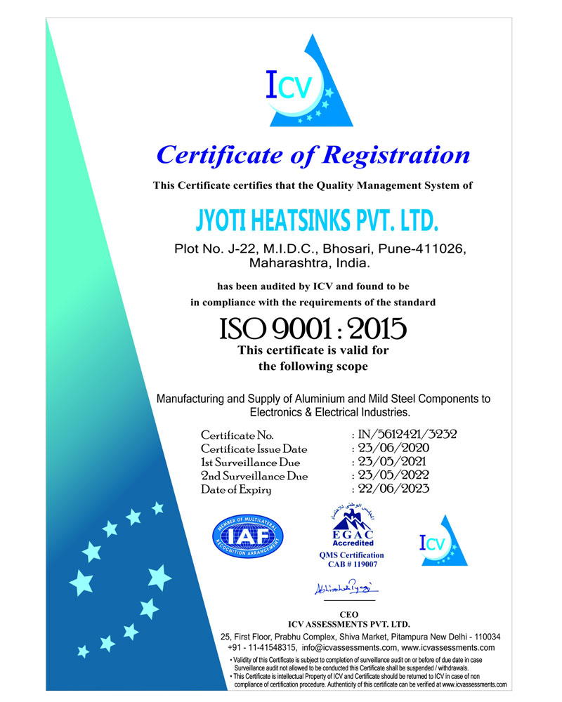 In Last 22 years Jyoti Heatsinks & Enclosures has grown from a small propritorship firm to an ISO Certified company manufacturing Aluminium Heatsinks, 19" Enclosures & Accessories for Electronic, Electrical, Defence Industries, E.V. Charger Enclosure.